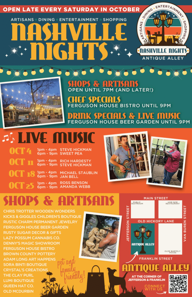 25oct5:00 pm9:00 pmNashville Nights (Antique Alley open late!)5:00 pm - 9:00 pm(GMT-04:00)